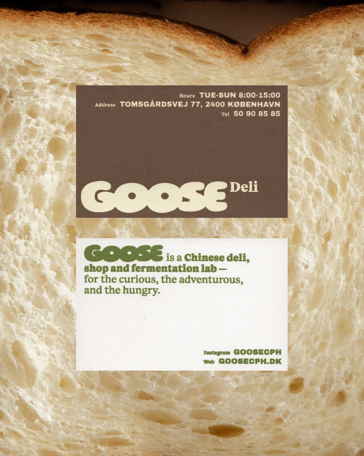 Goose Deli takes its name from the migratory bird—a playful nod to founders Baijie and Lan-xin’s own journeys across cultures, cities, and cuisines. Inspired by their multicultural backgrounds, they embrace an approach to food that’s intentionally “authentically unauthentic,” mixing comfort with surprise, and nostalgia with experimentation. We captured this spirit through a visual identity that’s vibrant, playful, and deliberately fluid, reflecting Goose’s lively reinterpretation of what a deli can be.