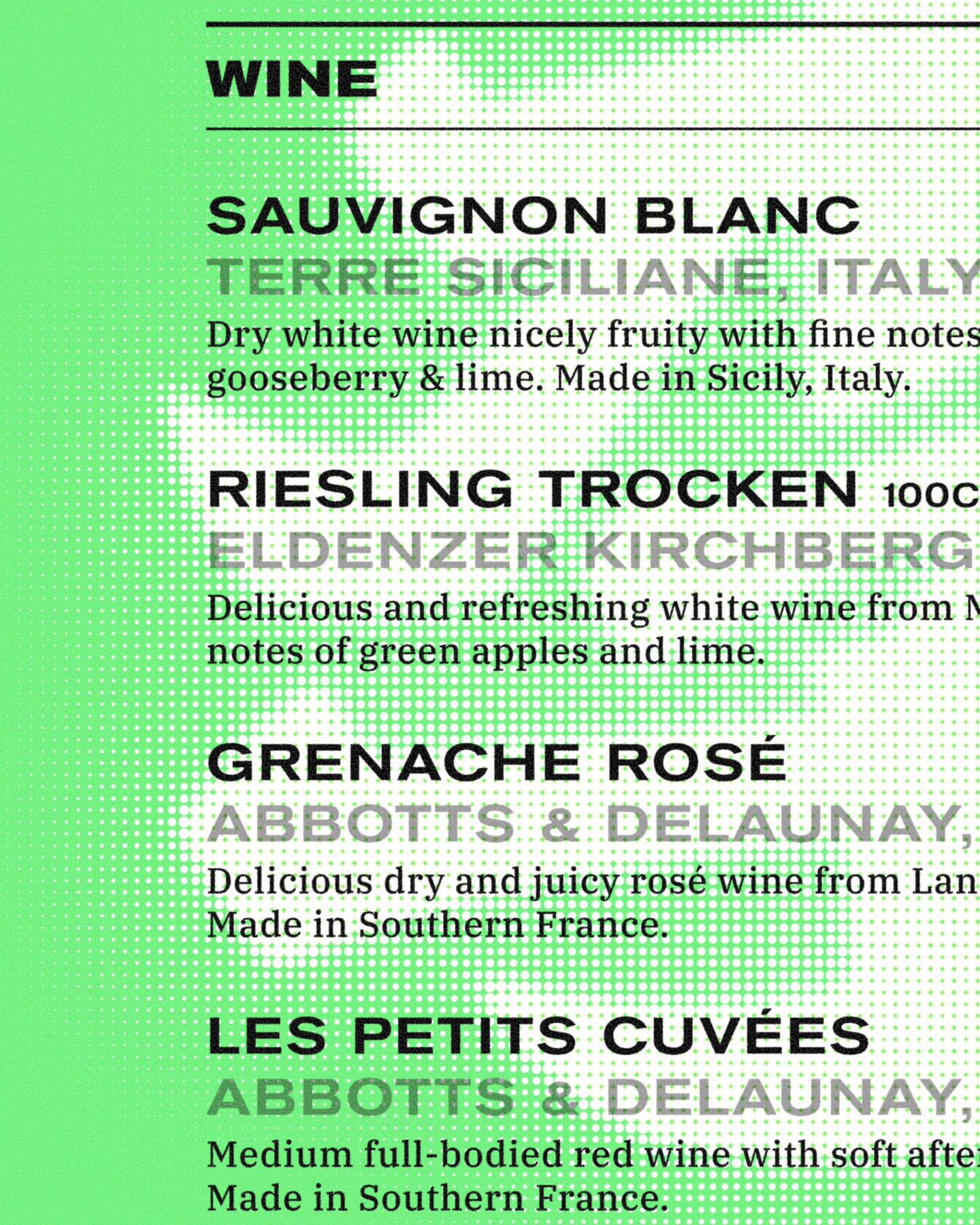 Our identity balances nostalgia and modernity, inspired by vintage typography from traditional Chinese packaging and handcrafted signage found throughout Hong Kong. Typography leads our design—bold, expressive, yet thoughtfully restrained—evoking a sense of familiarity without sacrificing contemporary appeal. Neon-green accents reference Hong Kong’s iconic street signs, energizing the visual landscape and creating a dynamic interplay between past and present, East and West.